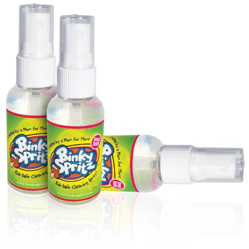 BinkySpritz Kid-Safe Cleaning, LIMITED TIME OFFER! Buy a 3-pack of BinkySpritz and get a bottle free. BinkySpritz is a kid-safe spray designed to clean items your child frequently drops and handles. Convenient and easy to use, BinkySpritz is made entirely of natural and non-toxic ingredients, so you can be sure no chemicals or disinfectants are harming your child.